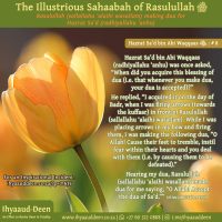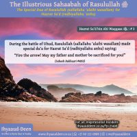 During the battle of Uhud, Rasulullah (sallallahu ‘alaihi wasallam) was severely attacked by the enemy and two links of his helmet penetrated his mubaarak face. Hazrat Abu Bakr Siddeeq (radhiyallahu ‘anhu) and Hazrat Abu Ubaidah (radhiyallahu ‘anhu) immediately ran to assist Rasulullah (sallallahu ‘alaihi wasallam). Hazrat Abu Ubaidah (radhiyallahu ‘anhu) …