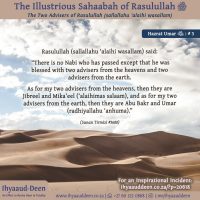 Hazrat ‘Abdur Rahmaan bin Khabbaab (radhiyallahu ‘anhu) narrates the following: I was present when Rasulullah (sallallahu ‘alaihi wasallam) was encouraging the Sahaabah (radhiyallahu ‘anhum) to equip the army and contribute towards the expedition of Tabook. On that occasion, Hazrat ‘Uthmaan (radhiyallahu ‘anhu) stood and said, “O Rasul of Allah (sallallahu …