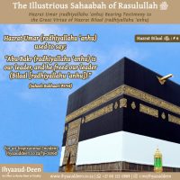 On the occasion when Hazrat ‘Umar (radhiyallahu ‘anhu) travelled to Baitul Muqaddas during the period of his Khilaafat, he visited Jaabiyah (a place in Shaam). While he was in Jaabiyah, the people approached him and asked him if he would request Hazrat Bilaal (radhiyallahu ‘anhu), who was residing in Shaam, …
