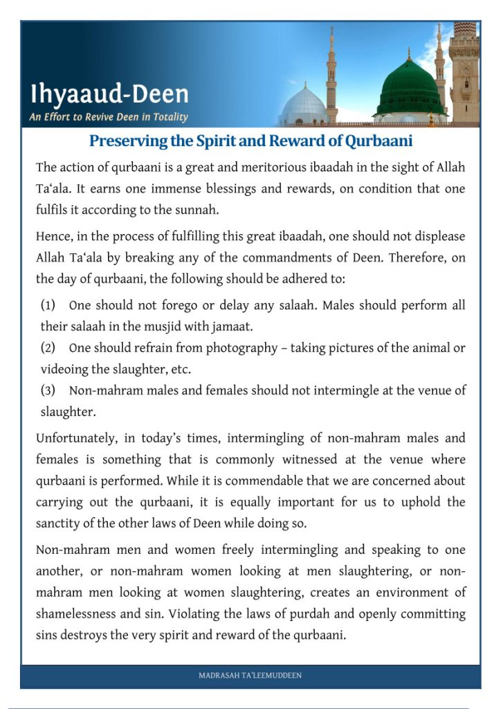 Preserving the Spirit and Reward of Qurbaani – Poster