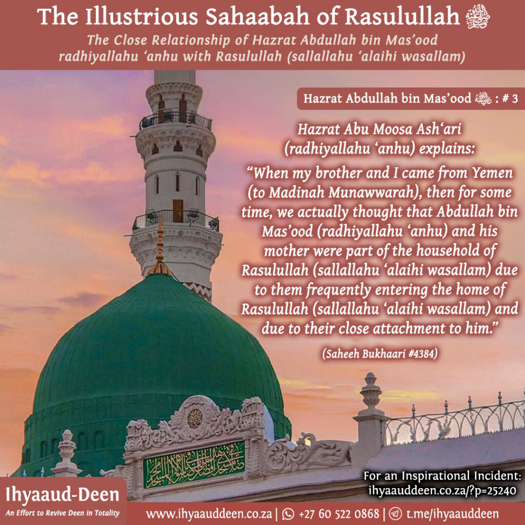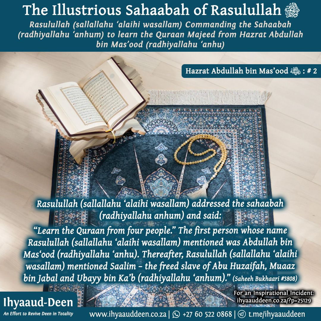 He also told Hazrat Abdullah bin Mas’ood (radhiyallahu ‘anhu), “When you return to Rasulullah (sallallahu alaihi wasallam), then tell him that I said, “My hatred for you today is much more than it was ever before. Similarly, throughout my life, I always remained the enemy of Allah Ta’ala, but today, my enmity for Allah Ta’ala is much more than it was ever before.”